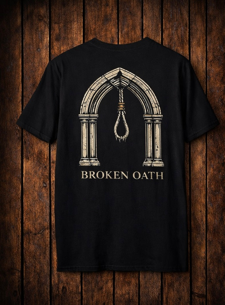The Fallen Arch shows the moment structure fails. Cracked stone, a suspended noose, permanence undone.